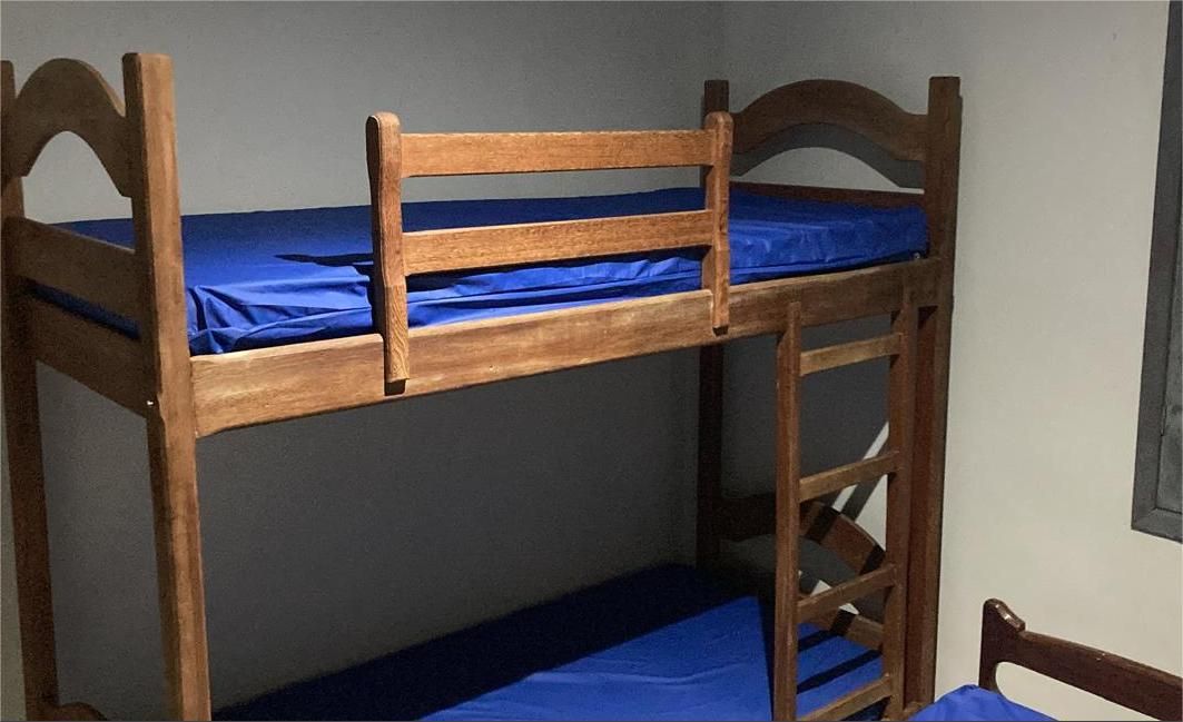 QUARTO DE SOLTEIRO COM 02 CAMAS DE BELICHE, 01 CAMA SOLTEIRO, MESA DE CANTO, 01 CABIDEIRO, 01 VENTILADOR