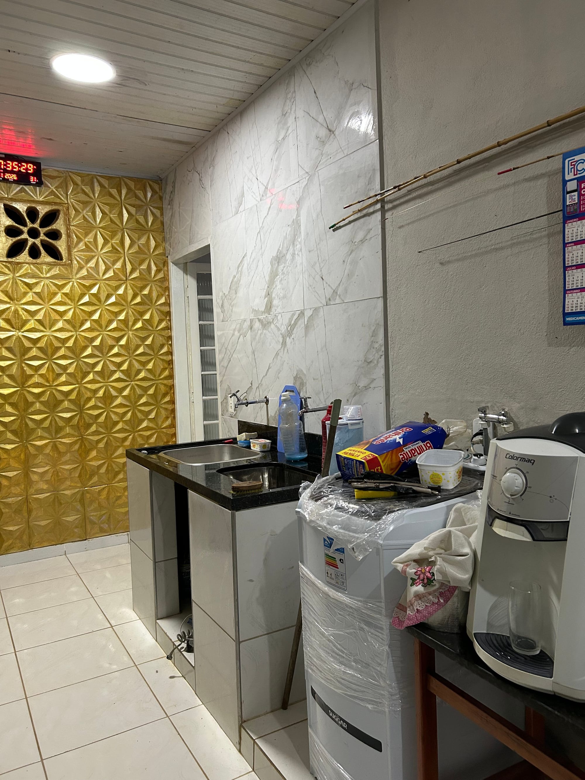 CONTEM 01 FOGÃO A GÁS COM BOTIJA, 01 MISTEIRA ELÉTRICA, 01 LIQUIDIFICADOR, 01 GELADEIRA DUPLEX, 01 MICROONDAS, 01 PURIFICADOR DE AGUA, PIA, ARMARIOS EMBUTIDO, PANELAS, TALHERES E FACAS, COPOS